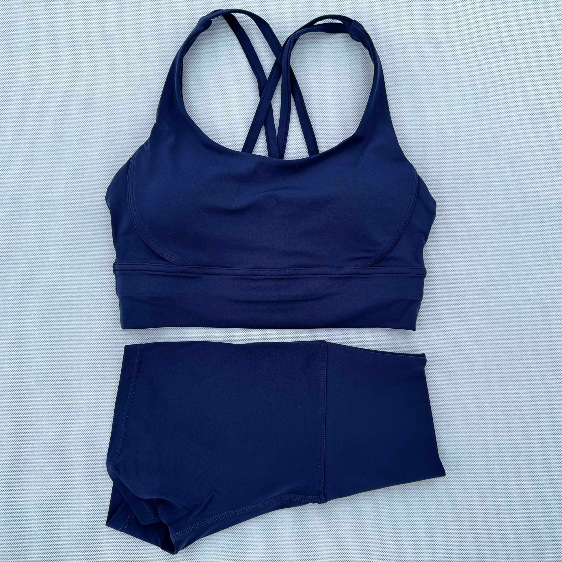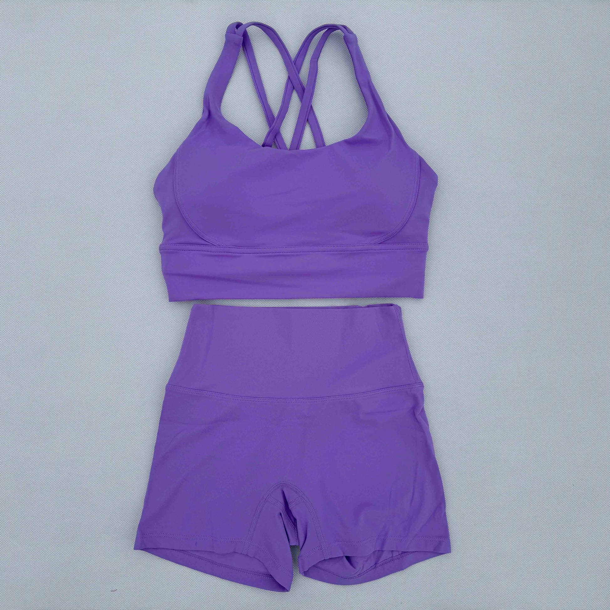 Yoga Clothes Set 2 Piece Gym Sports Shorts Set Women Cross Back Bra Top High Waist Shorts Fitness Suit Running Workout Tracksuit